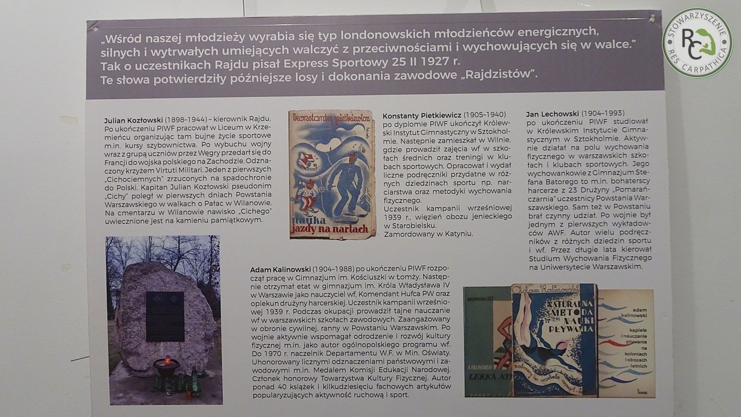 Pierwsze w tym roku spotkanie z cyklu prezentacji „Academii Res Carpathica” odbyło się 14 stycznia 2026 r. w Centrum Informacji im. Jana Nowaka-Jeziorańskiego przy ul. Czerniakowskiej 178a w Warszawie (Powiśle-Solec). Dr Anna Kalinowska przedstawiła historię i przebieg niezwykłego rajdu narciarskiego odbytego w 1927 roku na trasie Suwałki – Howerla w Karpatach Wschodnich. Impreza była zorganizowana przez studentów CIWF-u (Centralnego Instytutu Wychowania Fizycznego, poprzednika AWF) w Warszawie – jednym z uczestników był Adam Kalinowski, ojciec Prelegentki. Spotkaniu towarzyszyła przygotowana przez dr Annę Kalinowską wystawa planszowa z tekstami i ilustracjami przedstawiającymi to ambitne, zwłaszcza jak na tamte lata, turystyczno-sportowe przedsięwzięcie. Prezentacja nadzwyczaj interesująca – była to relacja w zasadzie „z pierwszej ręki”. Galeria zdjęć autorstwa Kol. Macieja Śnieżka [rc’].